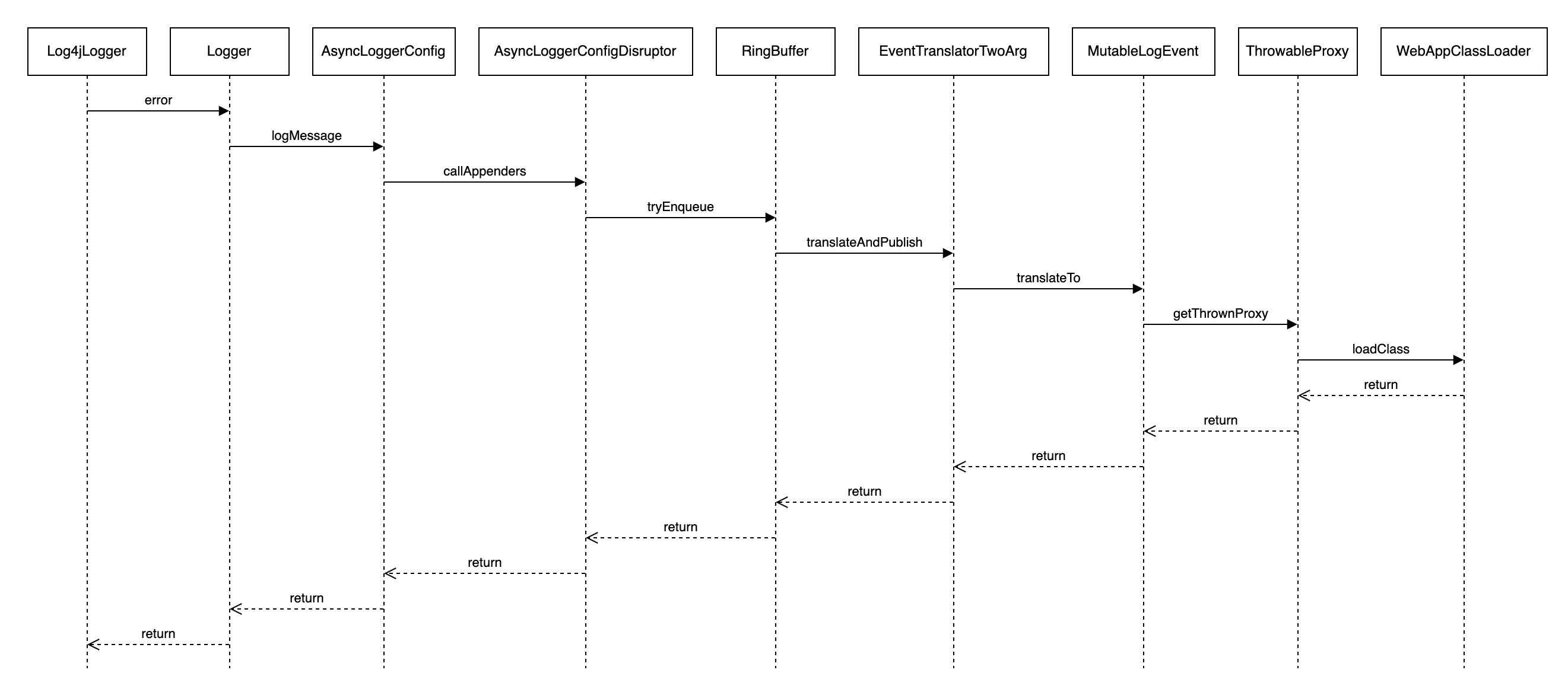 <AsyncLogger>标签,因为日志事件元素在入队前就会触发加载异常堆栈类,可能导致业务线程Block。如果希望使用Log4j2提供的异步日志AsyncLogger,建议配置Log4jContextSelector=org.apache.logging.log4j.core.async.AsyncLoggerContextSelector参数,开启异步日志。