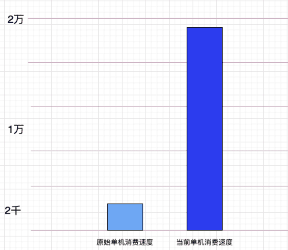 从MQ拉取并消费,这个过程如果MQ没有积压,则有零拷贝在支撑高速的拉取,如果积压了,则可能产生大量的MQ磁盘IO,拉取速度会大幅下降。这个过程效率会明显低于Udp发送到worker的处理效率,而且占用双份的网络带宽。实际表现上,worker表现出的强劲性能,较之前单条拉取MQ集群时,消费性能提升在10倍以上。