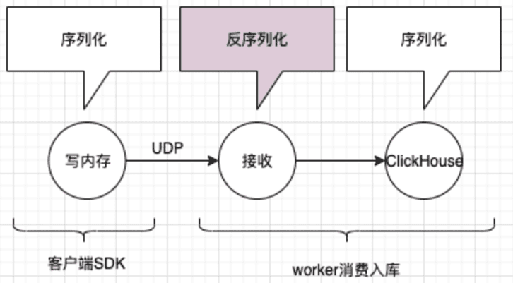 worker接收到之后,解析一下,写入自己的内存队列,再起数个异步线程,批量将队列的数据写入ClickHouse数据库即可。