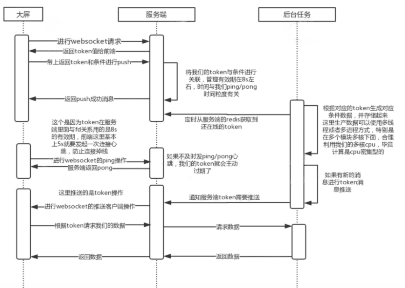 解决方案 :基于websocket通信机制,建立长链接,实现了心跳及重连机制,实时对上线发布后的大屏进行更新或下线管理。