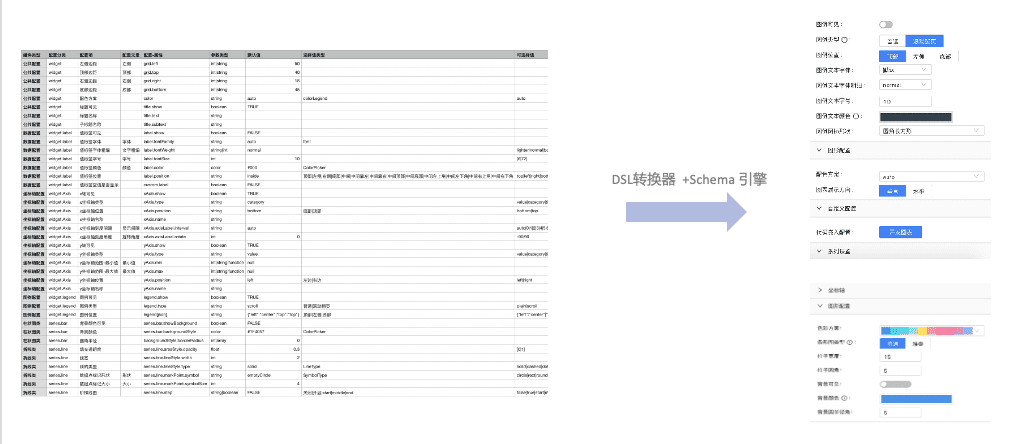 收益 :以上是我们定制的DSL结构协议层,用户只需要填写Excel表格,就可以实现动态表单的创建,实现组件配置项分类、配置复用、配置项之间联动、属性注释等功能。目前属性配置器已经支持了常用的15种的配置UI控件,通过定制的DSL结构协议层,可以快速完成组件的配置界面初始化,为后续规划的组件物料中心做准备。