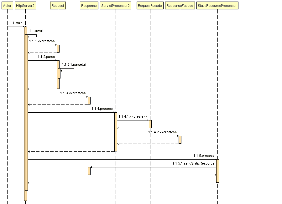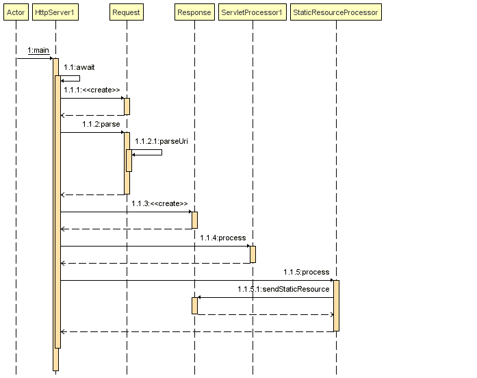 不难发现,我们只需要在HttpServer只需要请求的处理委托给ServletProcessor, 让它接受请求,并处理Response即可。