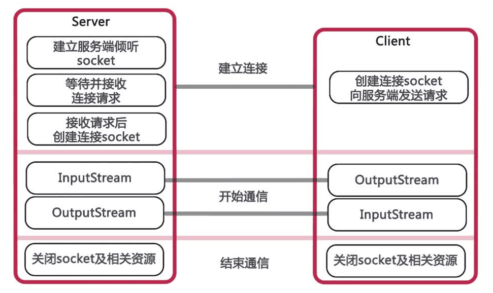 ServerSocket 和 Socket 不同,服务器套接字的角色是等待来自客户端的连接请求。一旦服务器套接字获得一个连接请求,它创建一个 Socket 实例来与客户端进行通信 。
