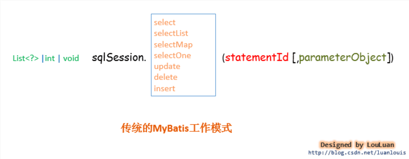 这是传统的传递Statement Id 和查询参数给 SqlSession 对象,使用 SqlSession对象完成和数据库的交互;MyBatis 提供了非常方便和简单的API,供用户实现对数据库的增删改查数据操作,以及对数据库连接信息和MyBatis 自身配置信息的维护操作。