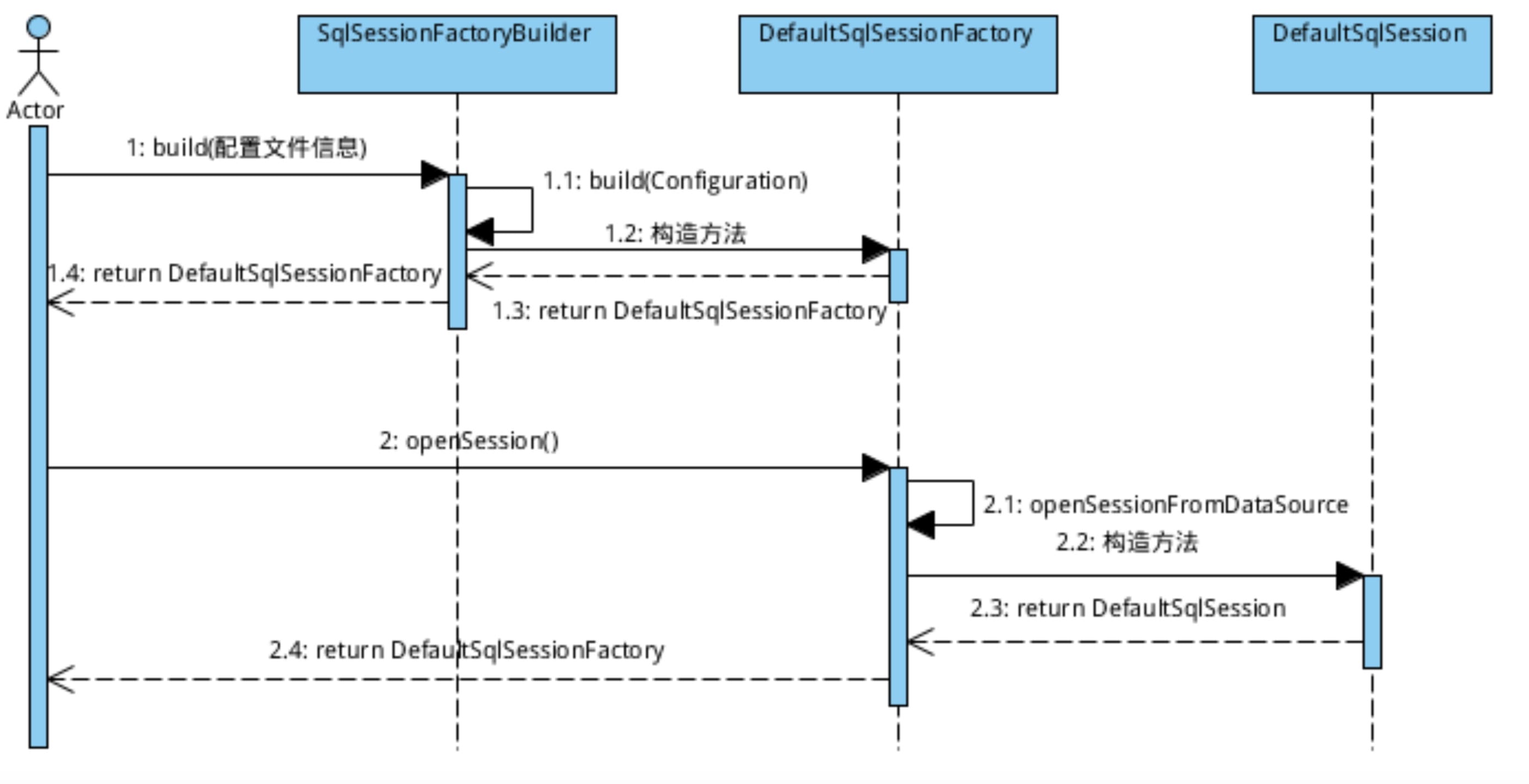}当我们获取到SqlSessionFactory之后,就可以通过SqlSessionFactory去获取SqlSession对象。源码如下: