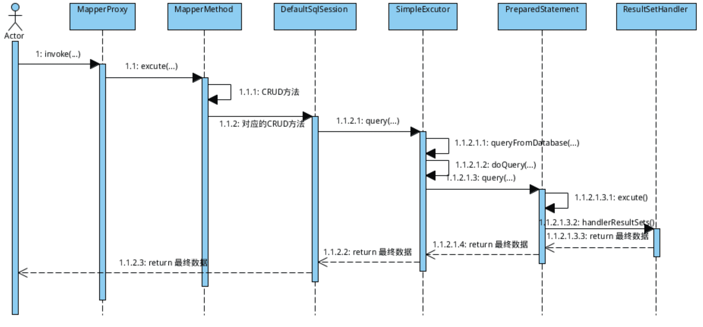 }从代码里可以看到,决断TypeHandler使用的是结果参数的属性类型。因此我们在定义作为结果的对象的属性时一定要考虑与数据库字段类型的兼容性。到此, 一次sql的执行流程就完了。