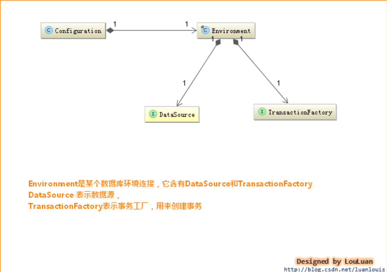 }Environment表示着一个数据库的连接,生成后的Environment对象会被设置到Configuration实例中,以供后续的使用。