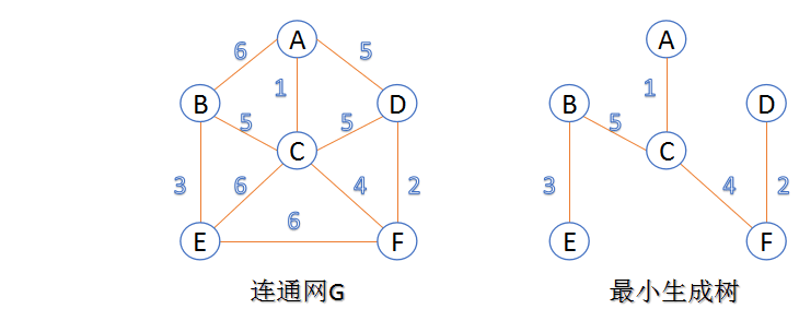 连通图: 在无向图中,若任意两个顶点vivi与vjvj都有路径相通,则称该无向图为连通图。强连通图: 在有向图中,若任意两个顶点vivi与vjvj都有路径相通,则称该有向图为强连通图。连通网: 在连通图中,若图的边具有一定的意义,每一条边都对应着一个数,称为权;权代表着连接连个顶点的代价,称这种连通图叫做连通网。生成树: 一个连通图的生成树是指一个连通子图,它含有图中全部n个顶点,但只有足以构成一棵树的n-1条边。一颗有n个顶点的生成树有且仅有n-1条边,如果生成树中再添加一条边,则必定成环。最小生成树: 在连通网的所有生成树中,所有边的代价和最小的生成树,称为最小生成树。