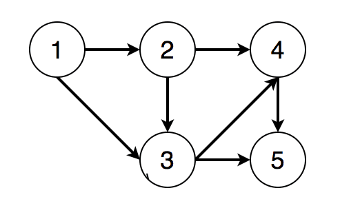 则我们可得到两个不同的拓扑排序结果: [1, 2, 3, 4, 5]和[1, 2, 3, 5, 4]。