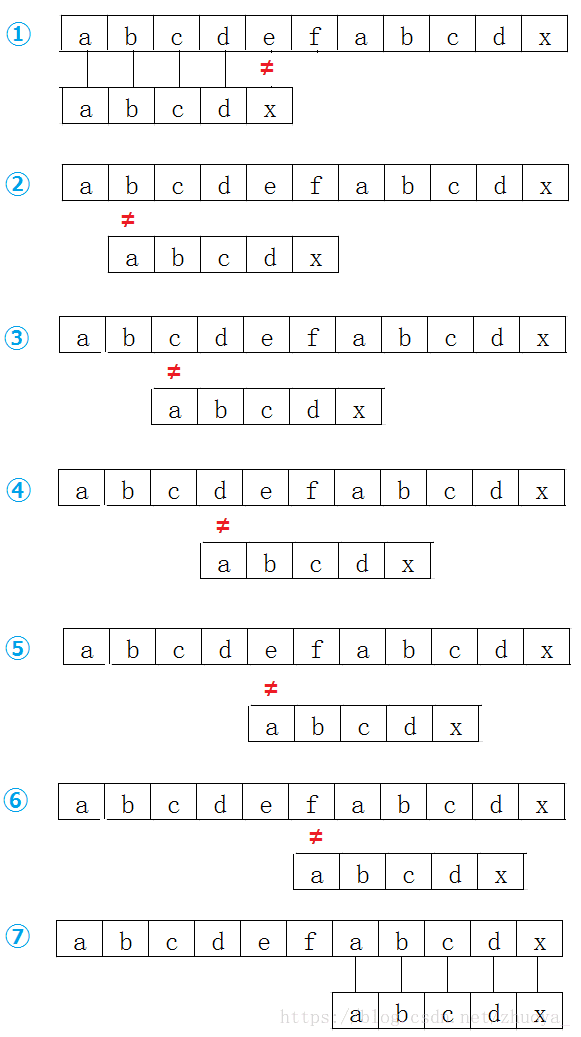 朴素的字符串匹配算法又称为暴力匹配算法 (Brute Force Algorithm),最为简单的字符串匹配算法。 @anarkh