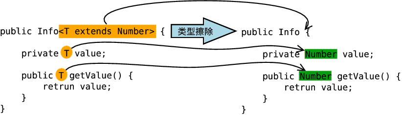 为了解决泛型中隐含的转换问题,Java泛型加入了类型参数的上下边界机制。<? extends A>表示该类型参数可以是A(上边界)或者A的子类类型。编译时擦除到类型A,即用A类型代替类型参数。这种方法可以解决开始遇到的问题,编译器知道类型参数的范围,如果传入的实例类型B是在这个范围内的话允许转换,这时只要一次类型转换就可以了,运行时会把对象当做A的实例看待。