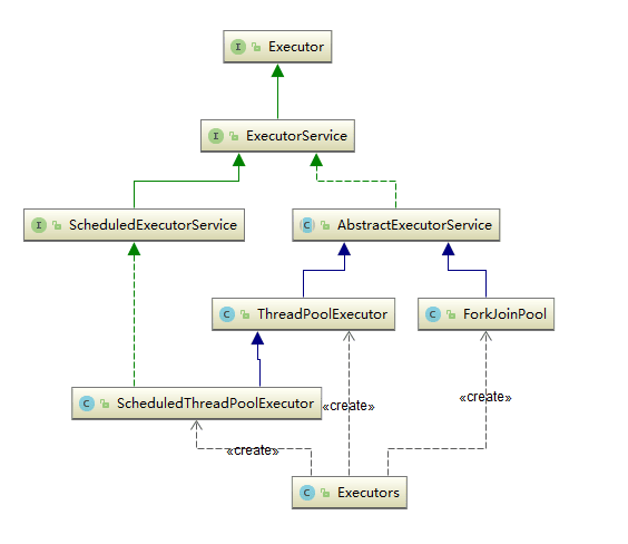 Executors是一个工具类,用其可以创建ExecutorService、ScheduledExecutorService、ThreadFactory、Callable等对象。它的使用融入到了ThreadPoolExecutor, ScheduledThreadExecutor和ForkJoinPool中。