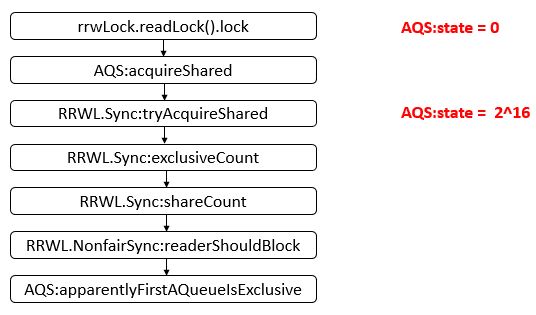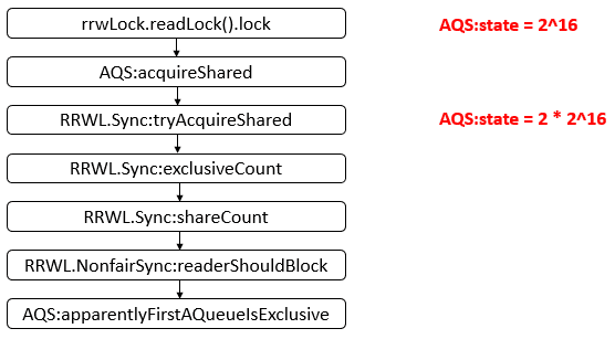 - rt2线程执行rrwLock.readLock().lock操作,主要的函数调用如下。