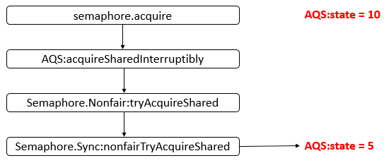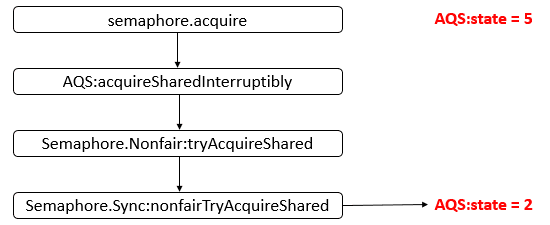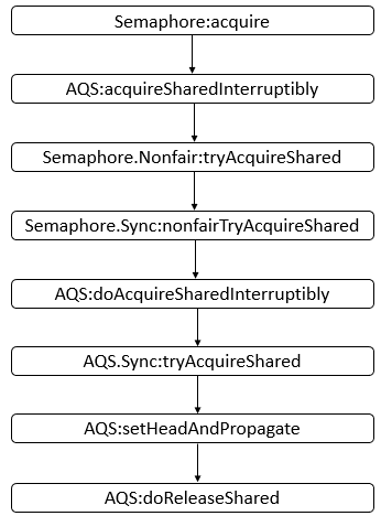 - t1线程执行semaphore.acquire操作。主要的函数调用如下图所示。