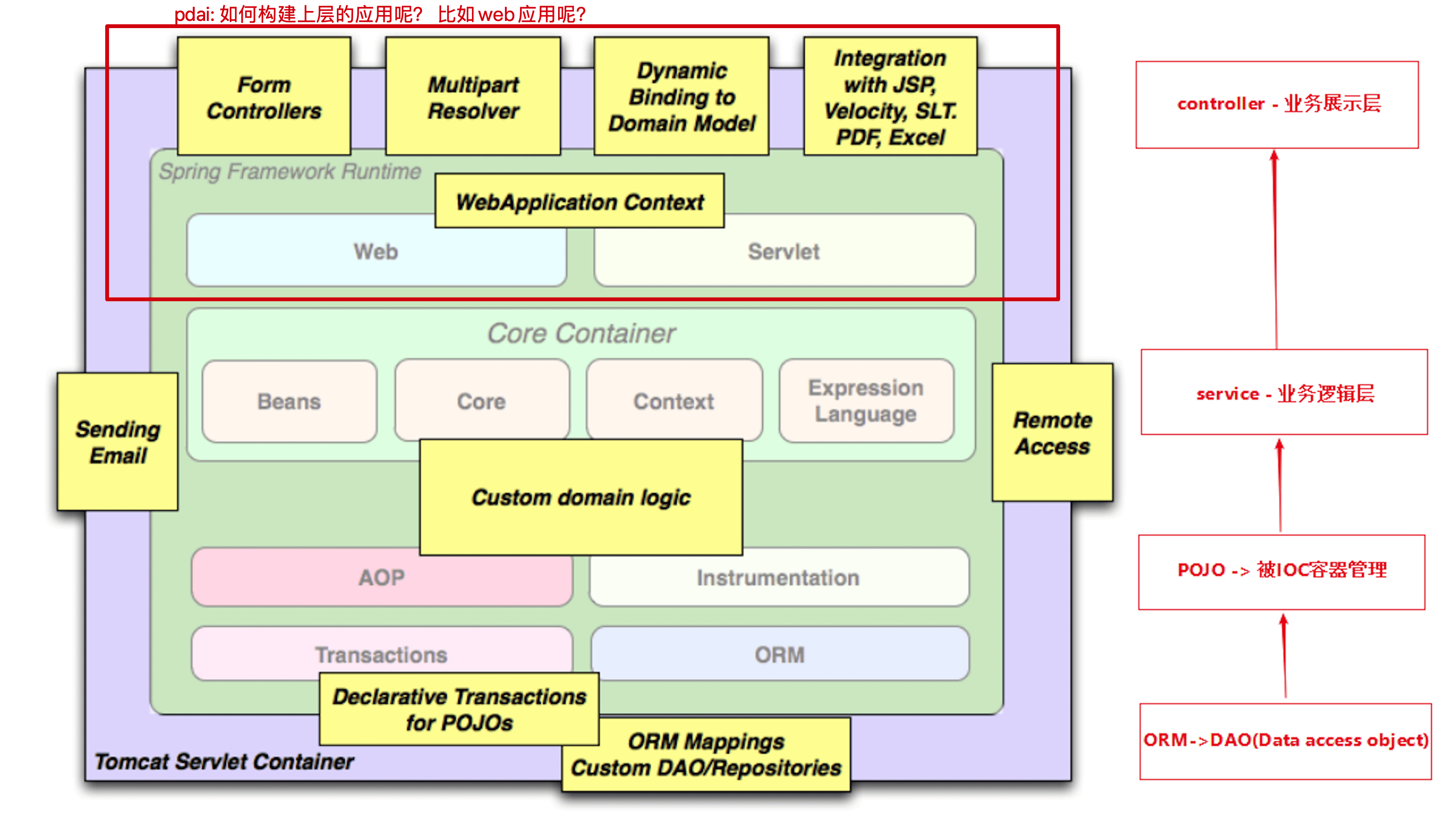- 让我们能非常简单的设计出干净的Web 层和薄薄的Web 层;