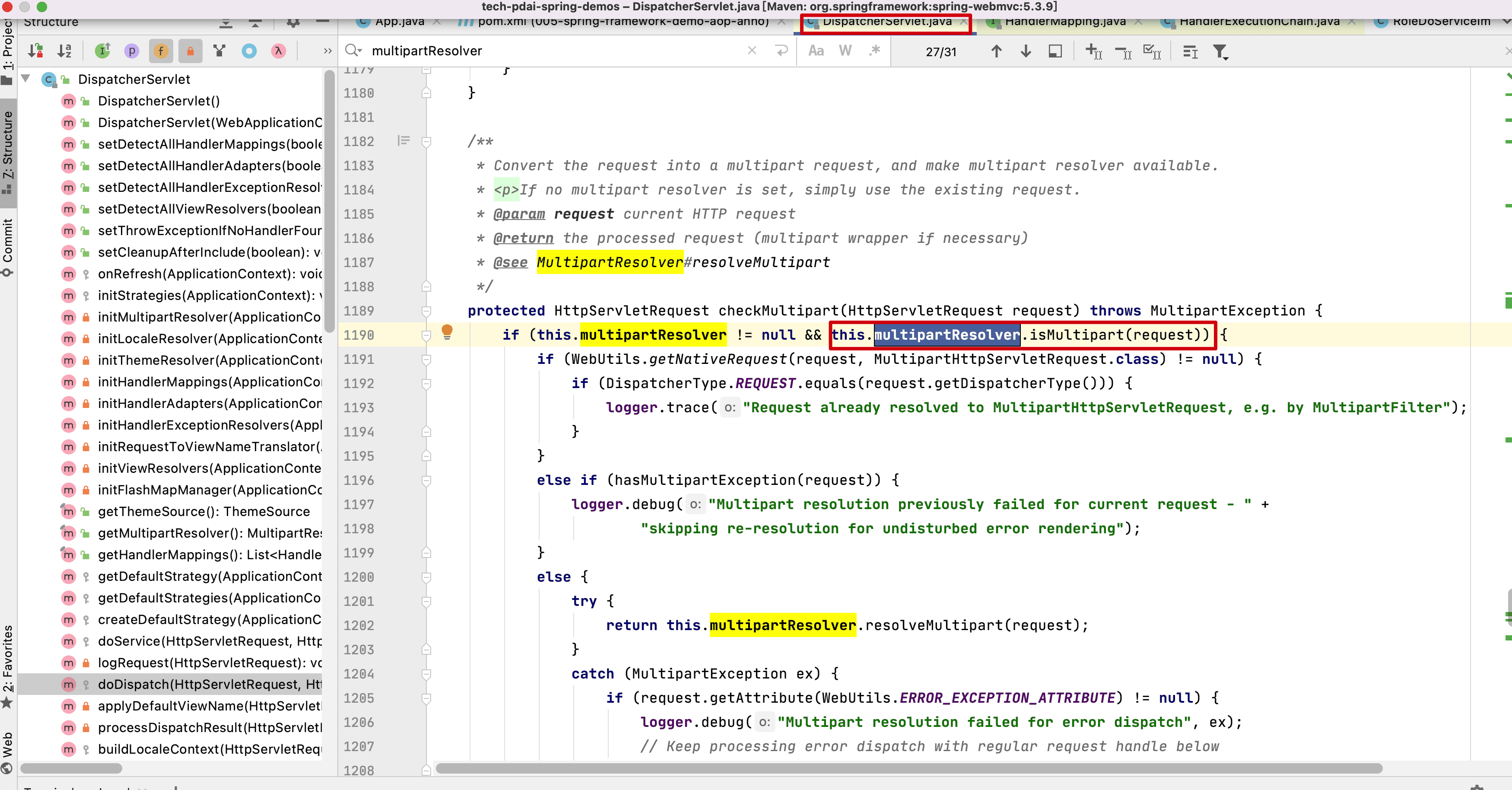 对于常规请求上述流程是合理的,但是如果是文件的上传请求,那么就不太一样了;所以这里便出现了MultipartResolver。