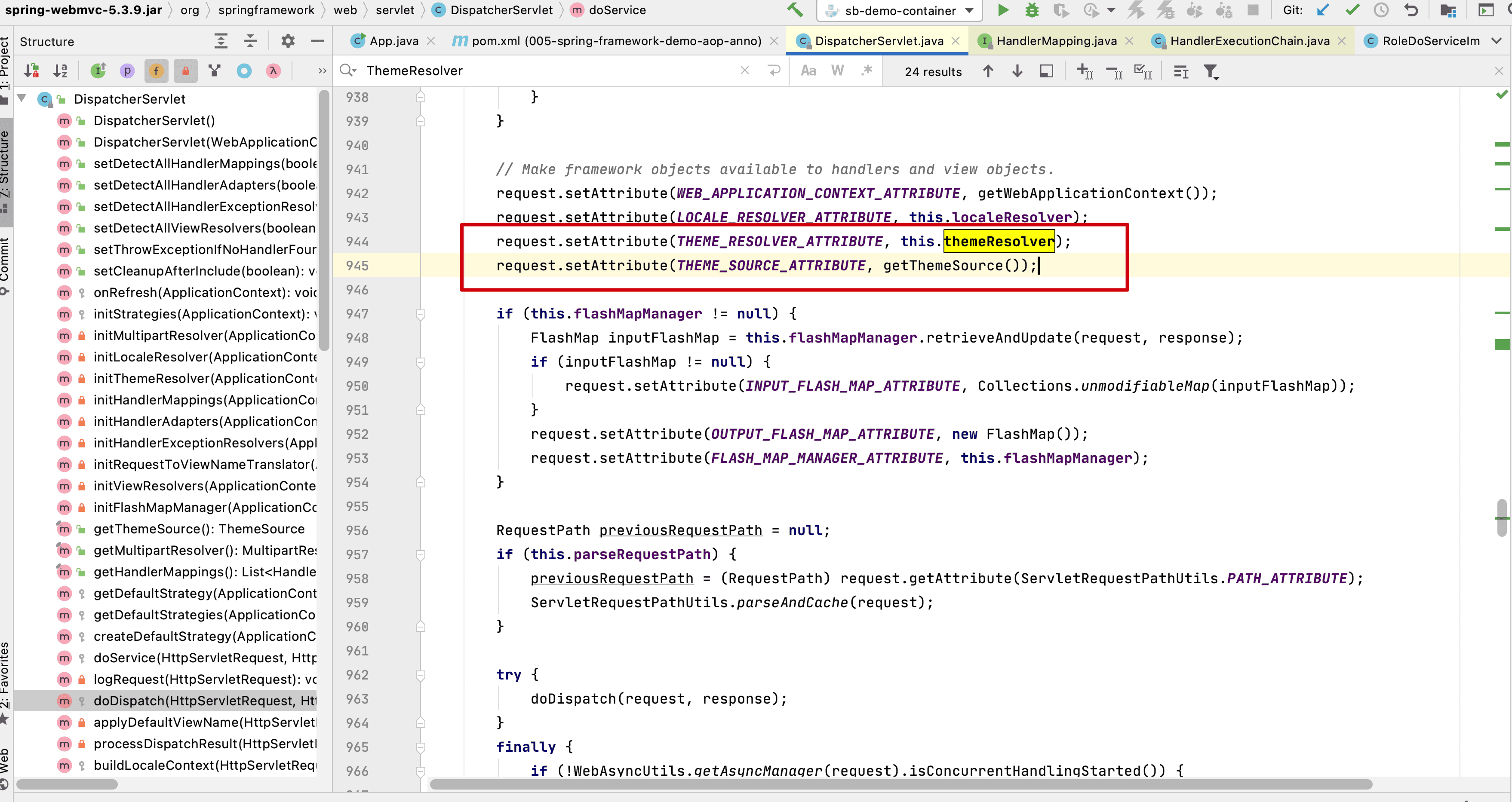 - DispatcherServlet—— >HandlerMapping, HandlerMapping 将会把请求映射为 HandlerExecutionChain 对象(包含一 个Handler 处理器(页面控制器)对象、多个HandlerInterceptor 拦截器)对象,通过这种策略模式,很容易添加新 的映射策略;