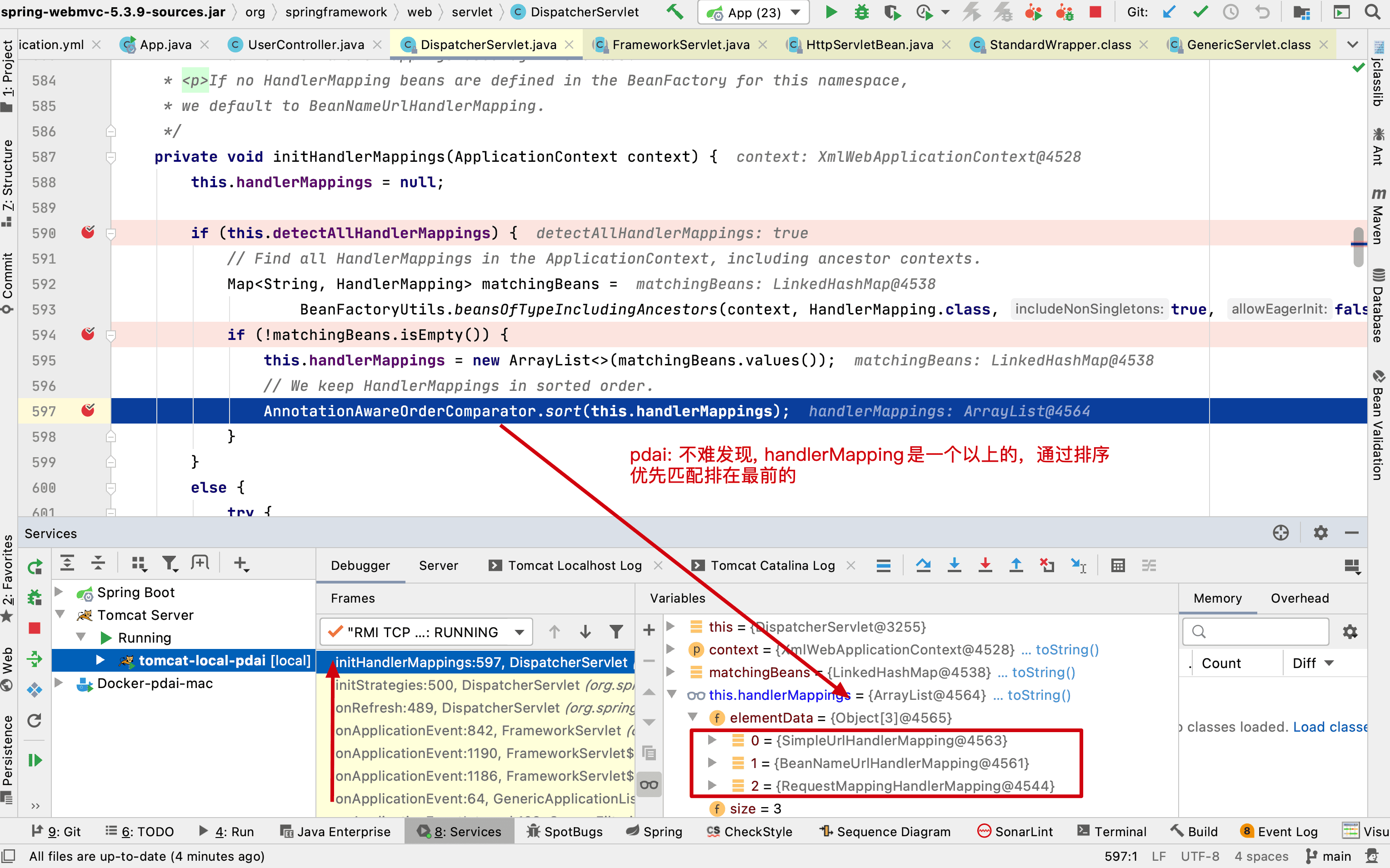 initHandlerMapping方法如下,无非就是获取按照优先级排序后的HanlderMappings, 将来匹配时按照优先级最高的HanderMapping进行处理。