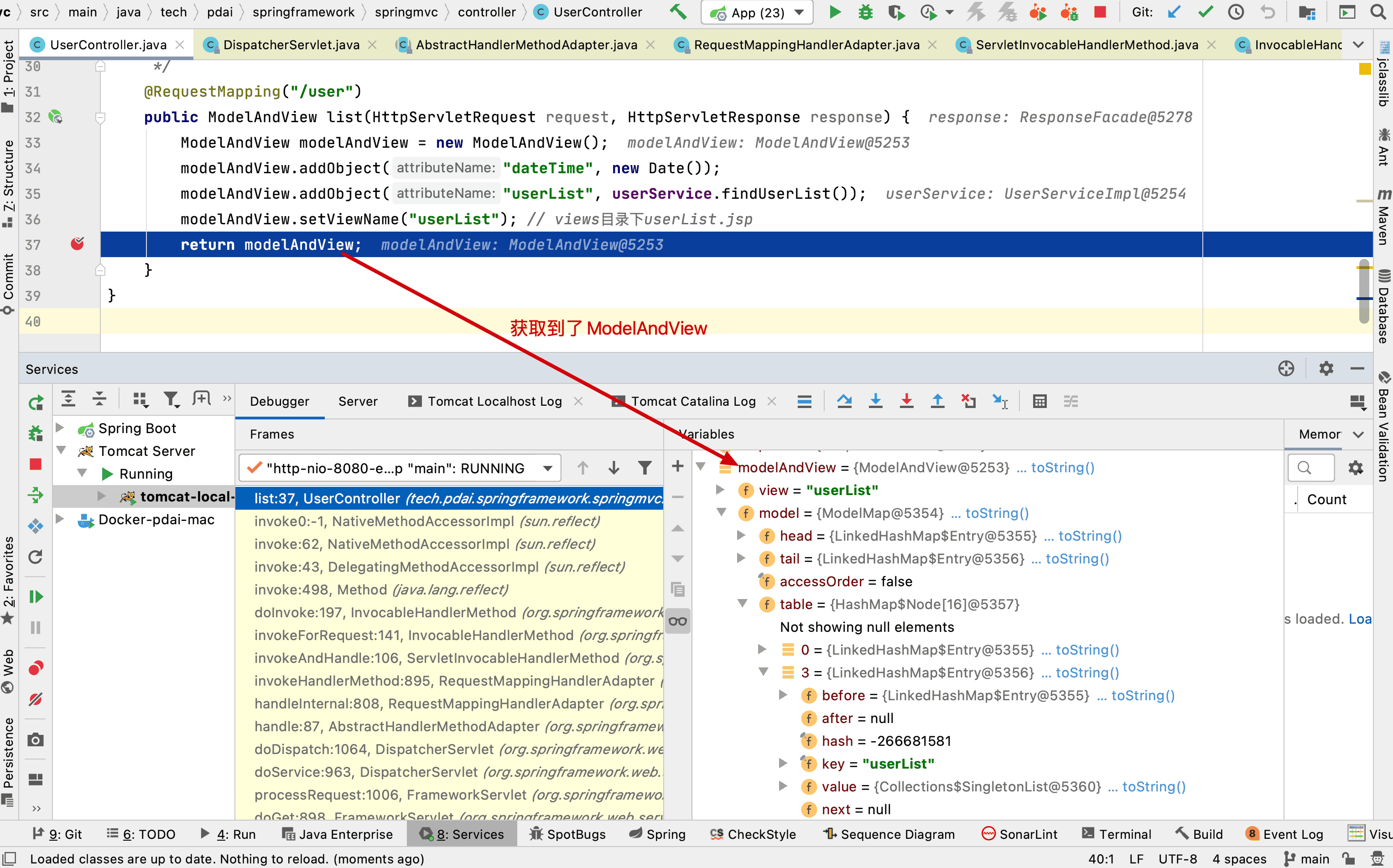 }invokeAndHandle交给UserController中具体执行list方法执行