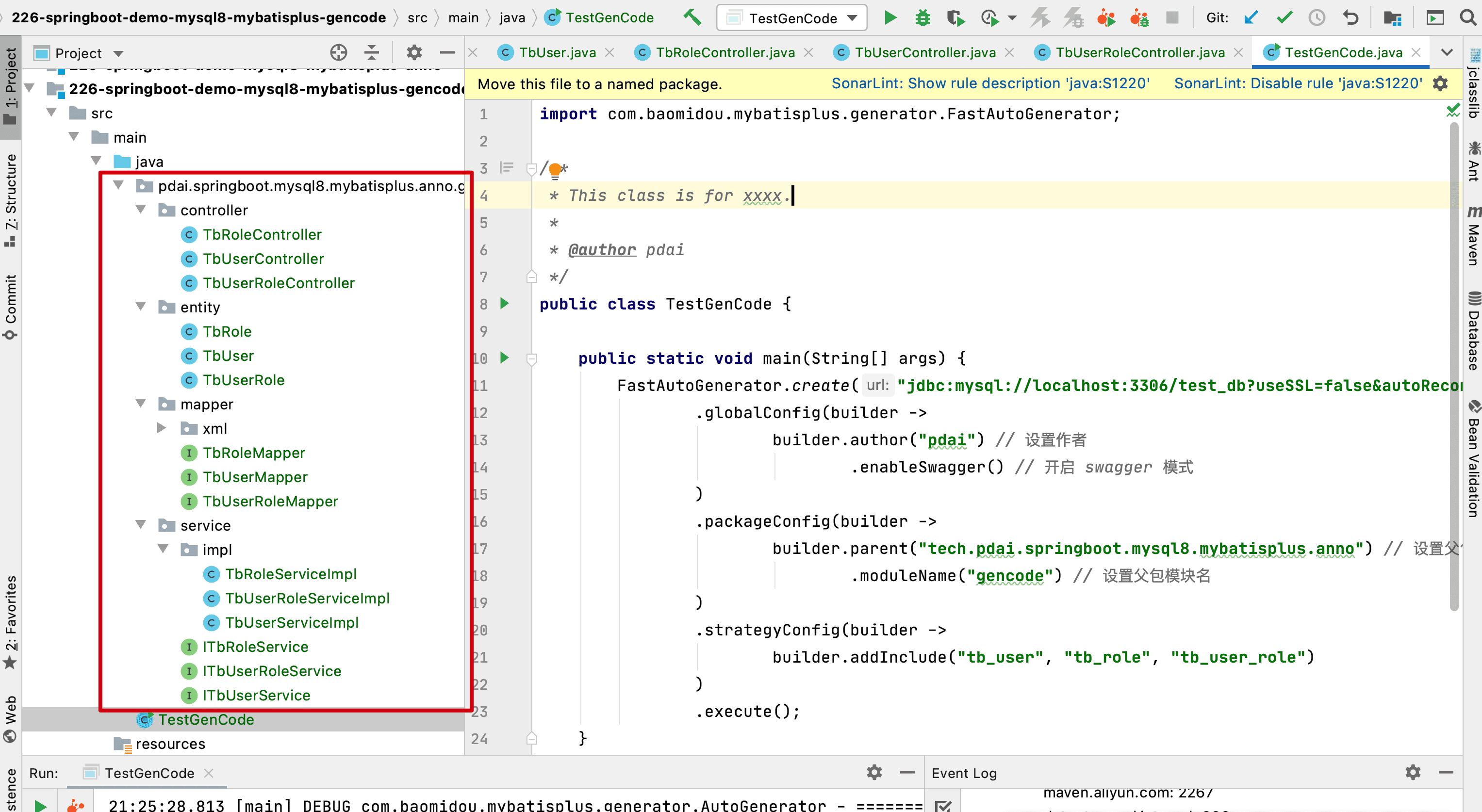 }同理生成mapper, service, controller等文件。是不是很简单?