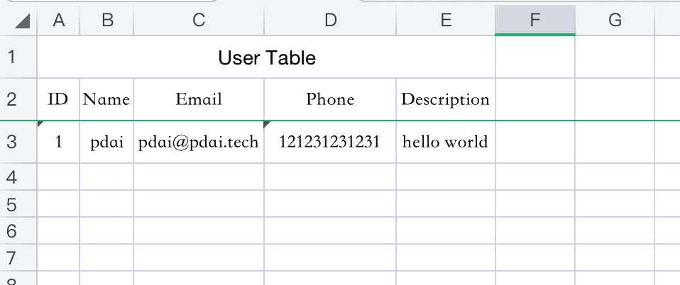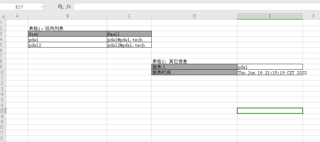 2022-06-15 22:20:48.145 INFO 52348 --- [nio-8080-exec-2] t.p.s.f.e.e.s.impl.UserServiceImpl : User(id=1, userName=anarkh, email=anarkh@anarkh.tech, phoneNumber=121231231231, description=hello world)填充Excel模板