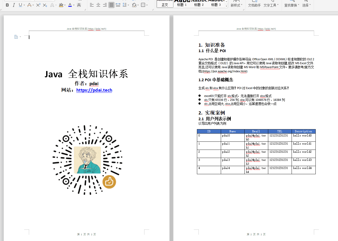 这里展示SpringBoot集成poi-tl基于word模板导出Word, 以及导出markdown为word的例子。