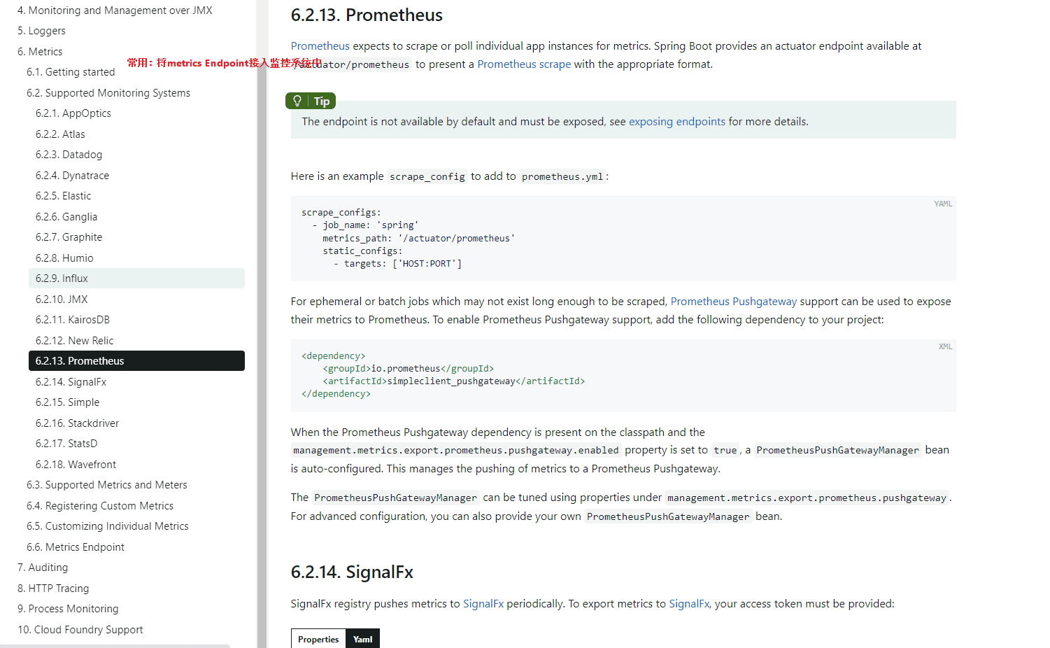 | prometheus | N/A | No | (web应用时 )向prometheus暴露监控信息(依赖micrometer-registry-prometheus) |