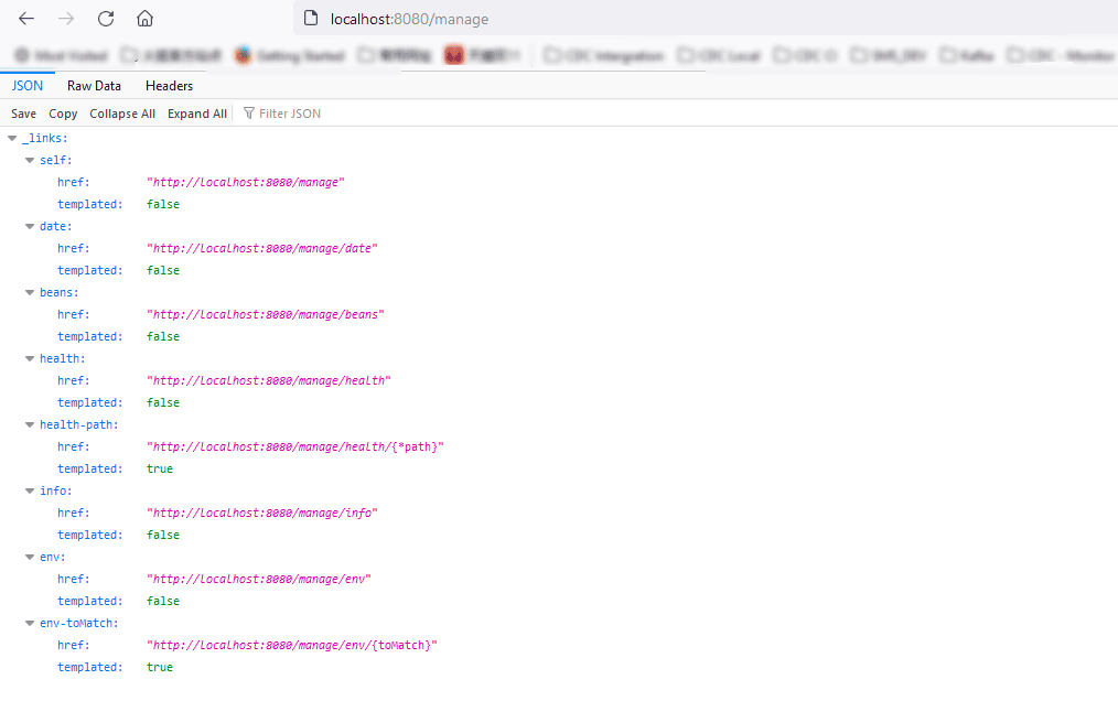 enabled: true上述配置只暴露info,health,env,beans四个endpoints, web通过可以/manage访问,