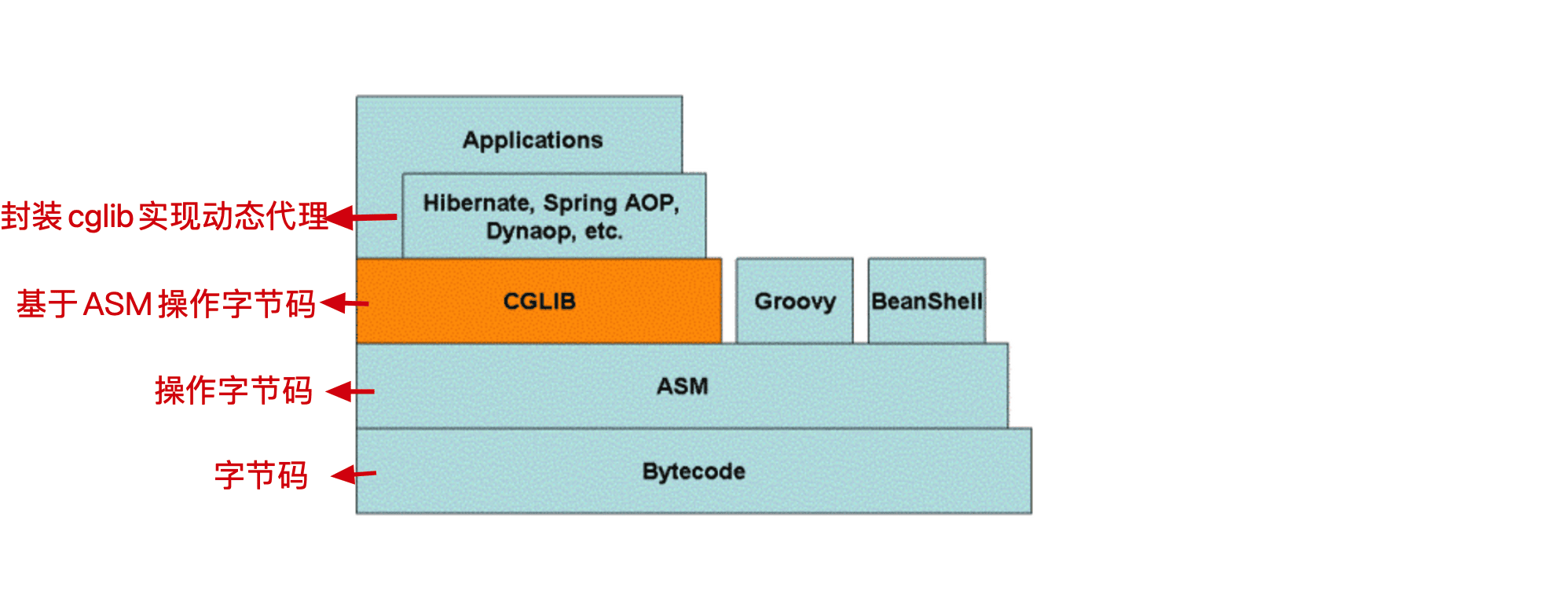 • cglib基于ASM字节码工具操作字节码(即动态生成代理,对方法进行增强)