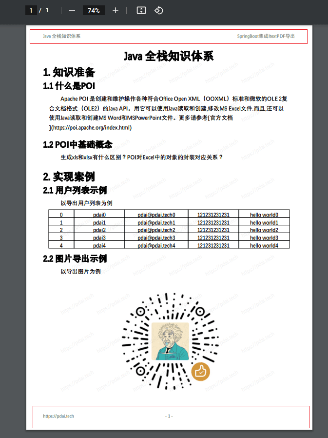 这里展示SpringBoot集成itext5导出PDF的例子。