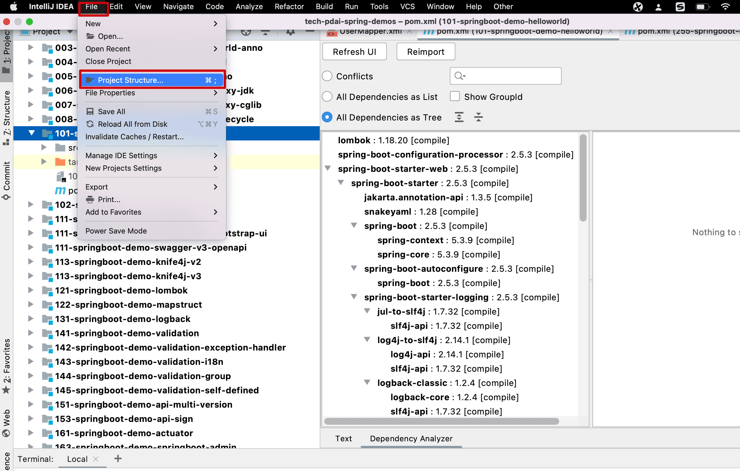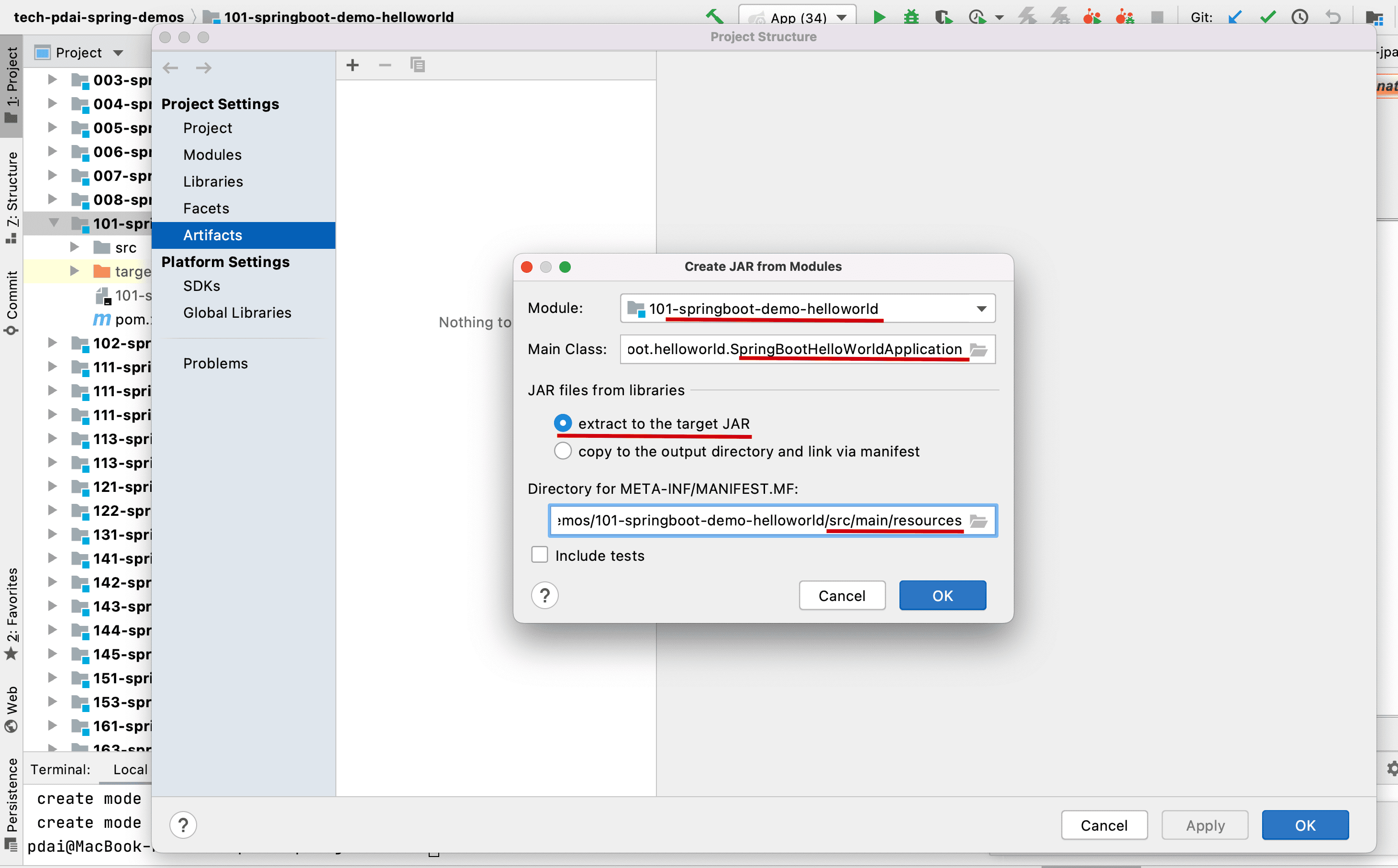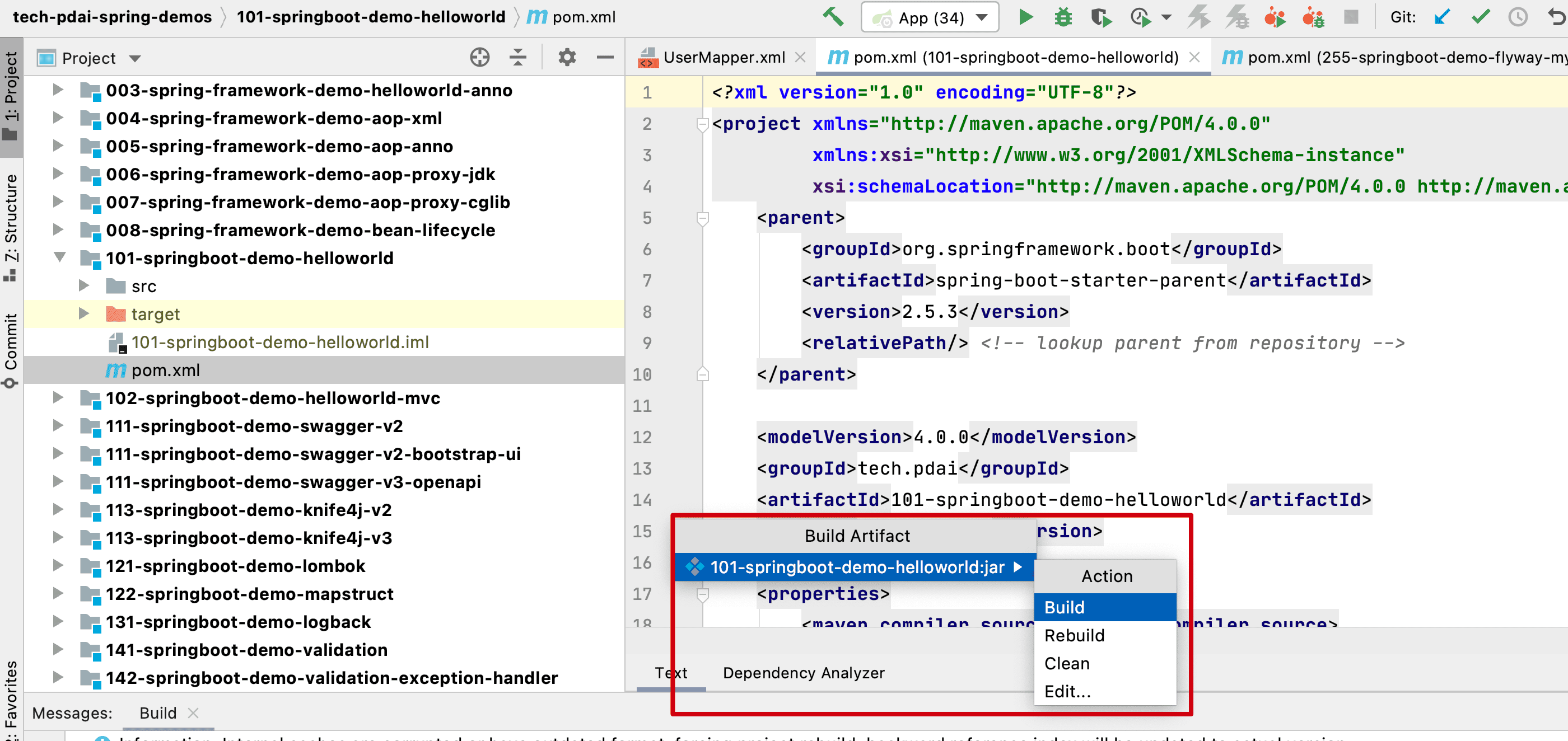 这里以一个Helloworld项目(SpringBoot入门 - 创建第一个Hello world工程)为例打包成jar。