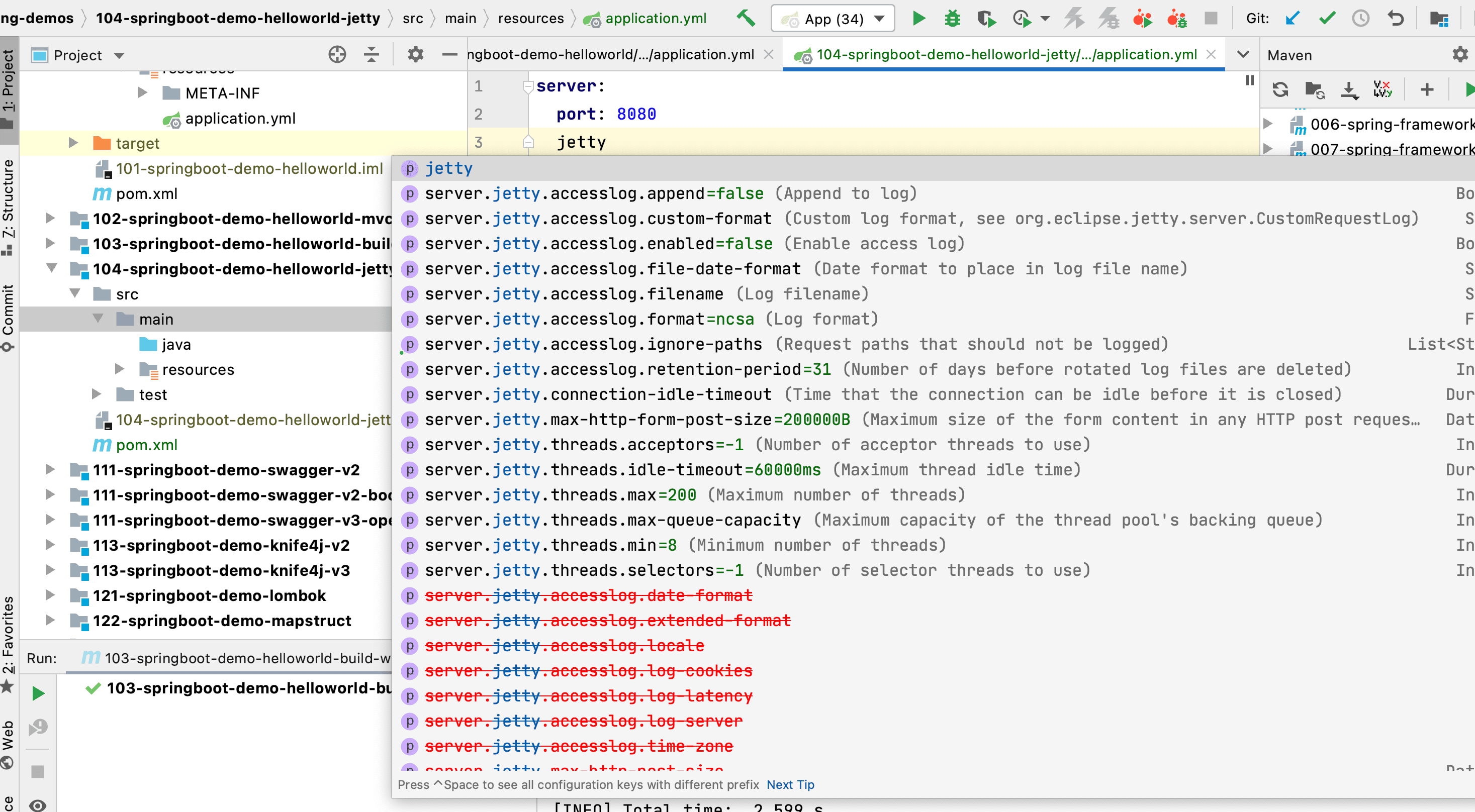 jetty相关的配置可以看: