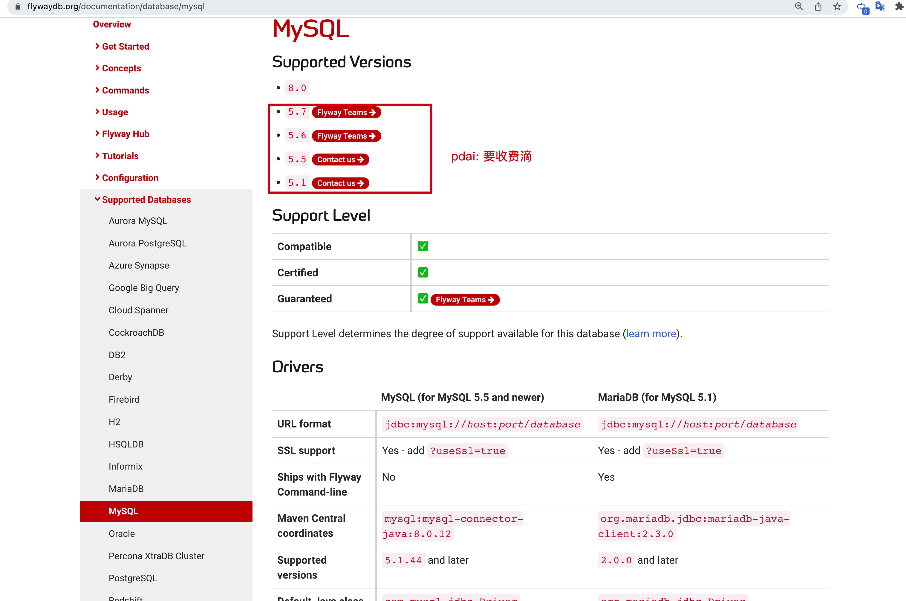 从Flyway对MySQL支持性,可以看出官方期望通过MySQL使用的大量基数获取更多的付费用户。