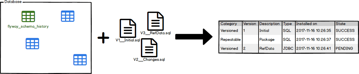- 版本变迁(Versioned Migrations) : 每个版本执行一次,包含有版本、描述和校验和;常用于创建,修改,删除表;插入,修改数据等